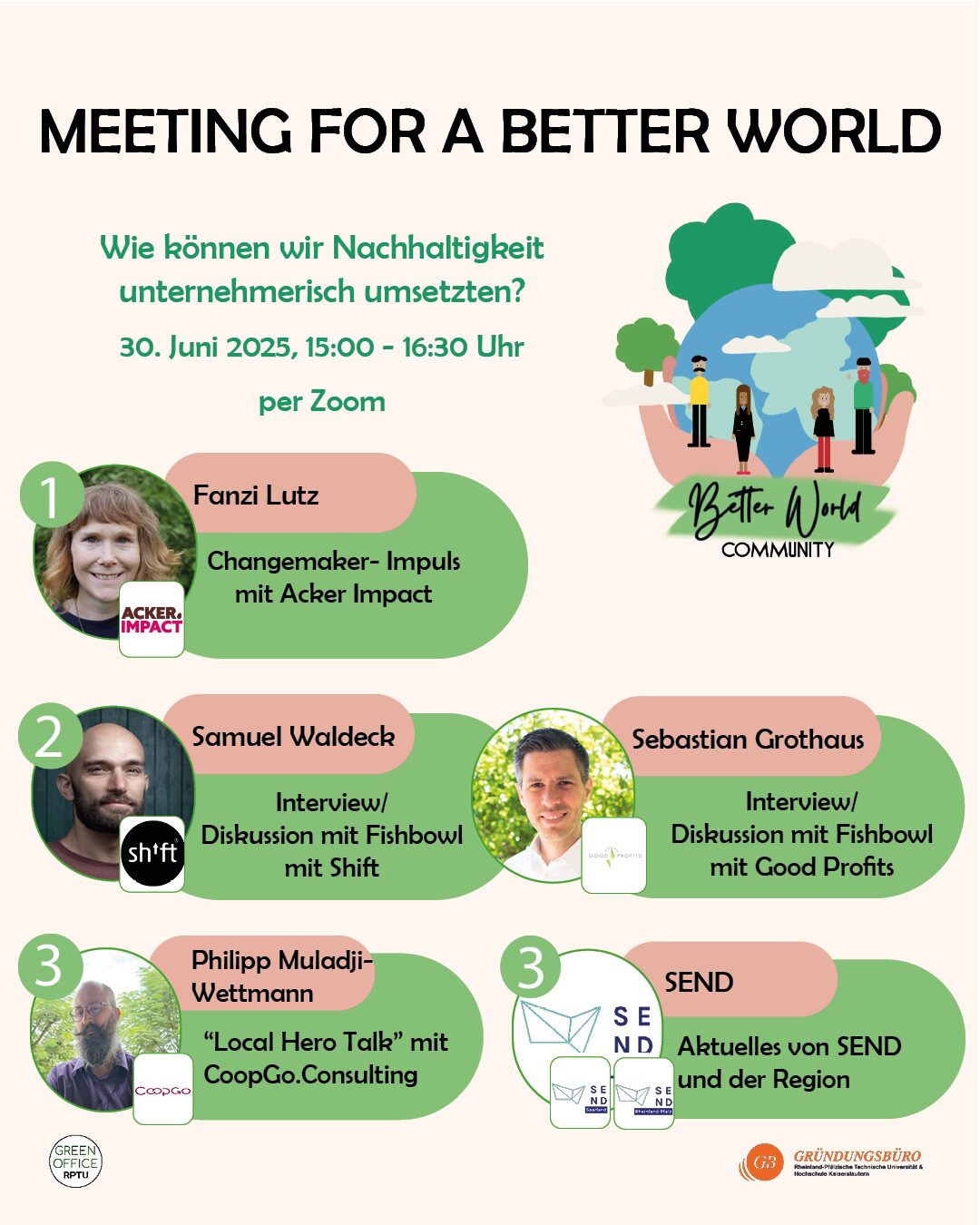 Die Better World Community wird administriert vom Gründungsbüro der RPTU Kaiserslautern/Landau und Hochschule Kaiserslautern.